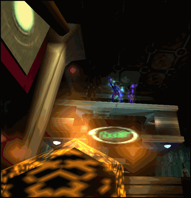 A disco leet looks up at people dancing on top of the bar at Rompa's and wiggles along with them to the beat of the music.