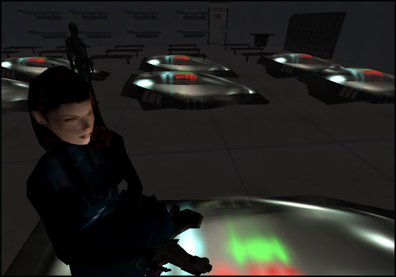 The bureaucrat and her droid discover a secret clan warehouse filled with small aerial ships. Prudencia studies the techical aspects of the vehicles and finds them to be constructed with alarmingly high technology.