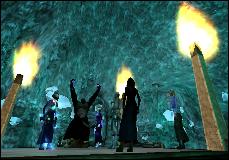 ![]() The next thing she knew, Prudencia, Iiris and her friends were all within a lustreous cavern that glittered and shimmered all over. The young bureaucrat would have liked to investigate her surroundings further, admiring every beautiful element of this magical place, but before you know it, the team was running swiftly onward, calling her to follow. They ran through an extensive maze full of caverns and passages for the longest time until they reached what seemed to be some sort of platform or shrine. This was Neleb's lair and the mission was to wait for him to surface from other dimensions, then slay him for his robe. Prudencia thought this was all quite horrific and cruel, but was assured that Neleb is an evil evil man, venom to mankind! Thus his murder seemed more rightous. The group waited for quite a while, until one of the members, a large atrox started chanting and performing some odd ritual in which he raised his hands high, then bowed down to the ground... | ||