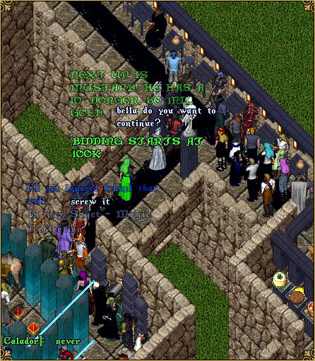 Questionnaire Results by Kagonos: 1) Who was the lady that bought you? Vera...something 2) For what amount did she buy you? 100 gp's *growls* 3) Did your winning lady dump you or keep you for the night, or for a date in the near future? Keep for the night. 4) For those that have already been with their ladies, were you payed? Yes. 5) For those that have already been with their ladies, did you have a nice time, and did it spark possible future meetings as well? Ok time but not a spark for future meetings. 6) To make future auctions better, how could they be better organised? Use the magic word: "I ban thee" and have female only bidders *grin* |