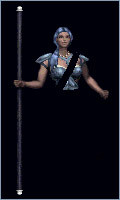 Musi Mussukka The olive green clothing put together with the bronze armour and blonde hair make up a truly superb color combination in this ensemble. Note the tight hugging green NPC tights as well as the rare green sandles. |
