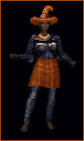 Black Voudou Yellow and black... natures colors of danger. This rule goes for this "beast" as well, for he is indeed a fright to behold, despite the fact that he is wearing a skirt. |
