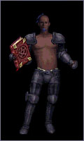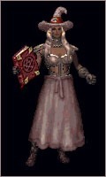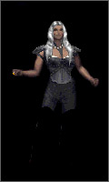valorite armour and crustal blue hair makes a glowing contrast against black hat, skirt and cloak. |
