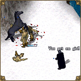 the two wandered off in search of a victim for her to relieve her predator needs upon. They came across an Ice Troll, which