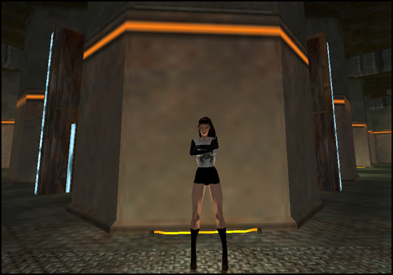 Prudencia uses a sexy clan shirt to disuise herself with as she enters a clan building. She prepares mentally for the massacre ahead by psyching herself up into a "whoop yer ass mode".