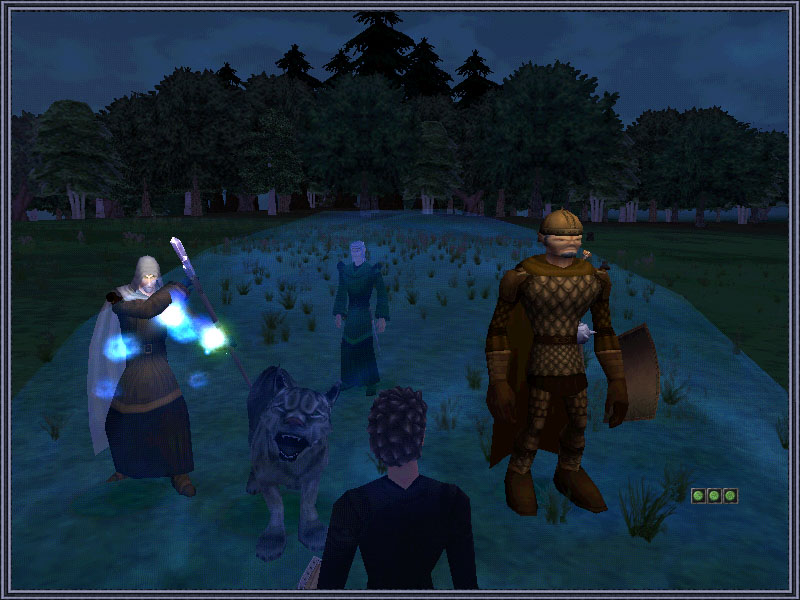 An elven mage casts a powerful protective shield over the group before entering battle.
