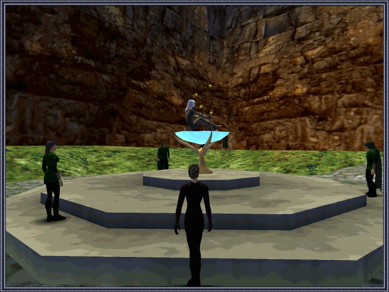![]() The sun had risen and fallen five times since she had read the heartbreaking words on the small note. But the sun had not risen once in her heart in that time. It was as cold and lifeless as stone, for she mourned the loss of having him in her life. She had lost interest in the things that brought her most joy, and so she spent her time doing what came automatically without much thought - smithing. On that fifth day, she stood at the Tir na Nog forge as usual, practising her skills. She stared at her materials with hollow eyes, numbed by her thoughts, hardly noticing the hustle and bustle of the people around her. She then awoke to a feeling of being watched and looked around nervously, but the other craftsmen were caught up in their work and trades conversing joyfully. No-one caught her eye as acting oddly. She shrugged off the feeling and returned to her work. It was then that she heard a voice in her head. She couldn't quite make out the words, but she was overcome with a strong urge to walk towards the mysterious murmuring. She stood up, dropping her smiths hammer with a large clang onto the cobblestone and leaving her pieces of leather and metal on the ground, much to the wonder of the smiths nearby. She found herself drawn to the circle of druids, a familiar place, for it was where she visited her trainer often. But this time the atmosphere radiated a grand feeling of serenity. As she neared the center, she noticed a magical shape sitting in the middle of the crystal fountain. She knew immediately that this was the source of the voice beckoning her. As she approached the white haired elven form, she felt all her sorrow and grief being peeled away from her mind. This was surely what heaven felt like? The elven spirit rose up to face her and now spoke softly, in a tongue that she could comprehend. He told her that her champion had taken his own life after sending off his goodbye note. The druidess did not need to question his words, for she had felt the aura of death in her heart. "But why?!" she sobbed. The elven spirit shook his head and said that he could not reveal the reasons, but that the act was out of love for her and that some day she would understand why it had to be so. He also promised that their souls would be reborn together in a better life, where their love could thrive, and that this life had been premature for their union. The knowledege of this comforted her so, that she could not be sad anymore. (See The Rangers) |