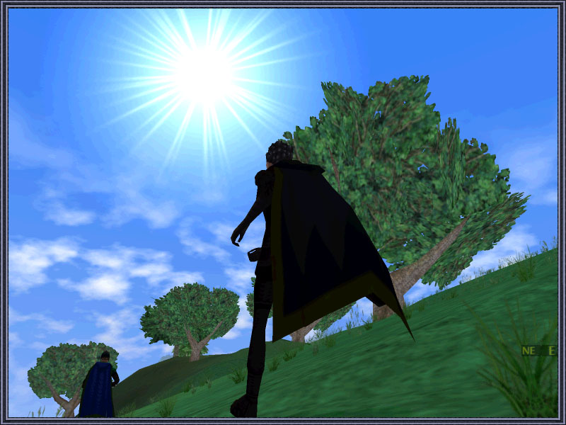 ![]() It was one more of those drab days. The kind where nothing inspires, nothing feels quite right, and the unsatisfaction of dragging through the hours, gnaws away at ye. The druidess was smithing in Tir na Nog, something she did a lot since her love had vanished a few weeks ago. It was something that forced her to get out with the people, to work, but which allowed her to go over her melancholy thoughts in relative peace. She got note from one of her friends, a blademaster, asking whether she'd care to go hunting. Mentally exhausted from her smithing, she happilly agreed and so the two agreed on Howth as their starting point. From there, they swam over the eastern river, and she showed him a secret band of evil rock like creatures which they hunted for a while. While resting, he asked her how she had been coping with her sorrow. She looked down sadly and admitted that things were not well. He knew the reason and not wanting to dwell on sad things, jumped up and suggested they'd travel farther east. She was eager for something new to take her mind off her woes and as they ran along the dew sprinkled hills, against the morning sun rising brightly in the blue skies, her mood elevated considerably. As they ran, he remembered a special place far, far away. A place he knew, would lift her spirits. And being her friend, he was concerned for the druidess. He wanted to make this day, a bit better than it would have been. Without word or hint, he led her to that special place. |