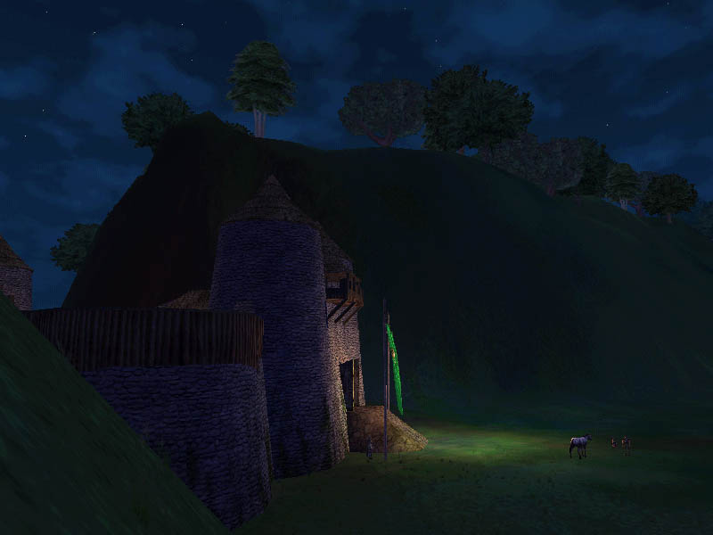 ![]() There was a serene, even drowsy atmosphere hanging over the town which was nestled within the massive walls of Druim Ligen. And twas no wonder! The locals had been asleep for hours already. I was not sleepy though, instead I felt alert as I sat upon the steep hill overlooking the entrance to the town. A rythmic chant could be heard coming from the crickets hidden throughout the tall grass, and the clouds glided by slowly in the star studded sky. As beautiful as it all was, and as nice as Druim Ligen seemed, I missed the familiarity of my humble home town Connla. I felt a strong urge to travel back, but knew that walking through the wilderness during the darkest hours would mean sure death for the likes of a young maiden as myself. But perhaps on horseback I could make it... As if my prayers had been heard, my eyes spotted a free horse for rent just in front of the massive wooden gates... |