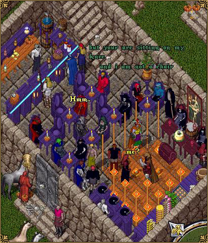 Everything was set for the wedding reception. The tables creaked from the weight of all the delicious foods that had been ordered from the royal chefs, a beautiful wedding cake and pink champagne had been arranged for the newlyweds who sat in special thrones in front of the dance floor. Saphireena had also decorated the place in a Halloween theme.